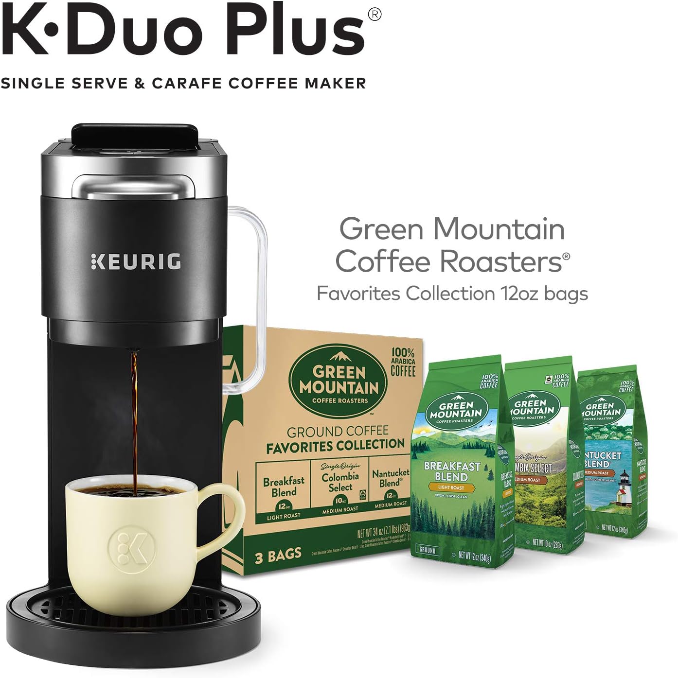 Amazon Com Keurig K Duo Plus Coffee Maker Single Serve K Cup Pod And 12 Cup Carafe Brewer With Green Mountain Ground Coffee Favorites Collection 12 Oz Bagged 3 Count Kitchen Dining